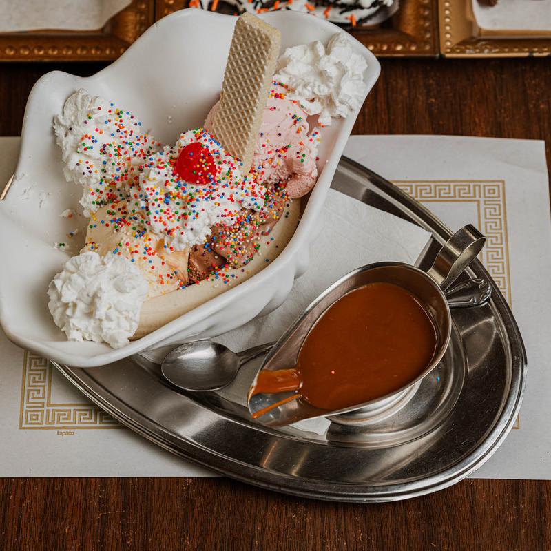 All our sundaes and splits may have your choice of ice cream flavors at no extra charge.